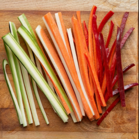 Because heat penetrates quickly, julienne vegetables cook rapidly without losing their structural identity. Carrots, leeks, ginger, and bell peppers are commonly cut this way when quick sautéing or stir-frying is required.