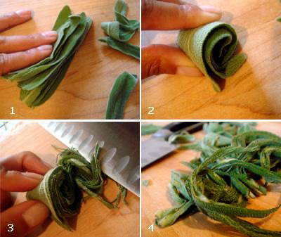 chiffonade leafy herbs and greens knife cut culinary technique