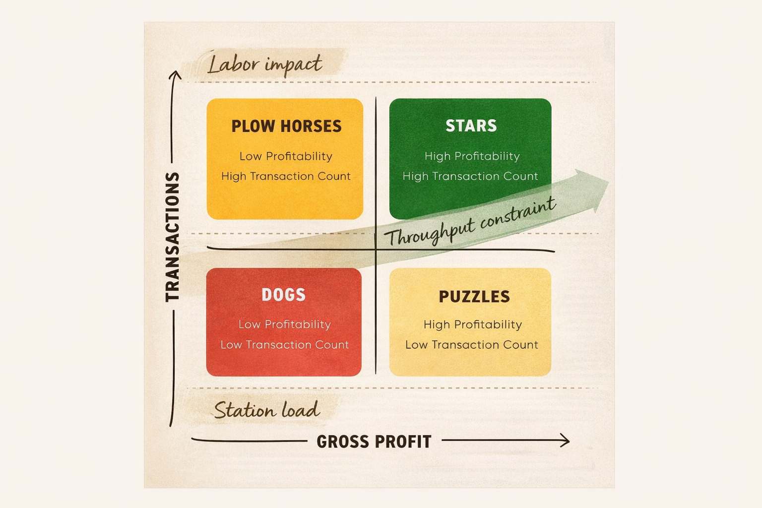 The quadrants would still exist. But overlaid quietly on top would be the realities that determine whether a restaurant survives peak service: